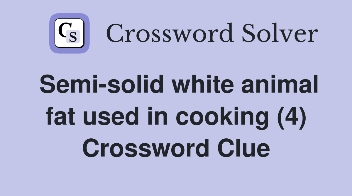 Semi solid white animal fat used in cooking (4) Crossword Clue