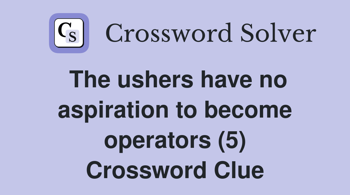 The ushers have no aspiration to become operators (5) Crossword Clue