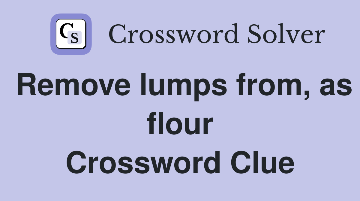Remove lumps from as flour Crossword Clue Answers Crossword Solver