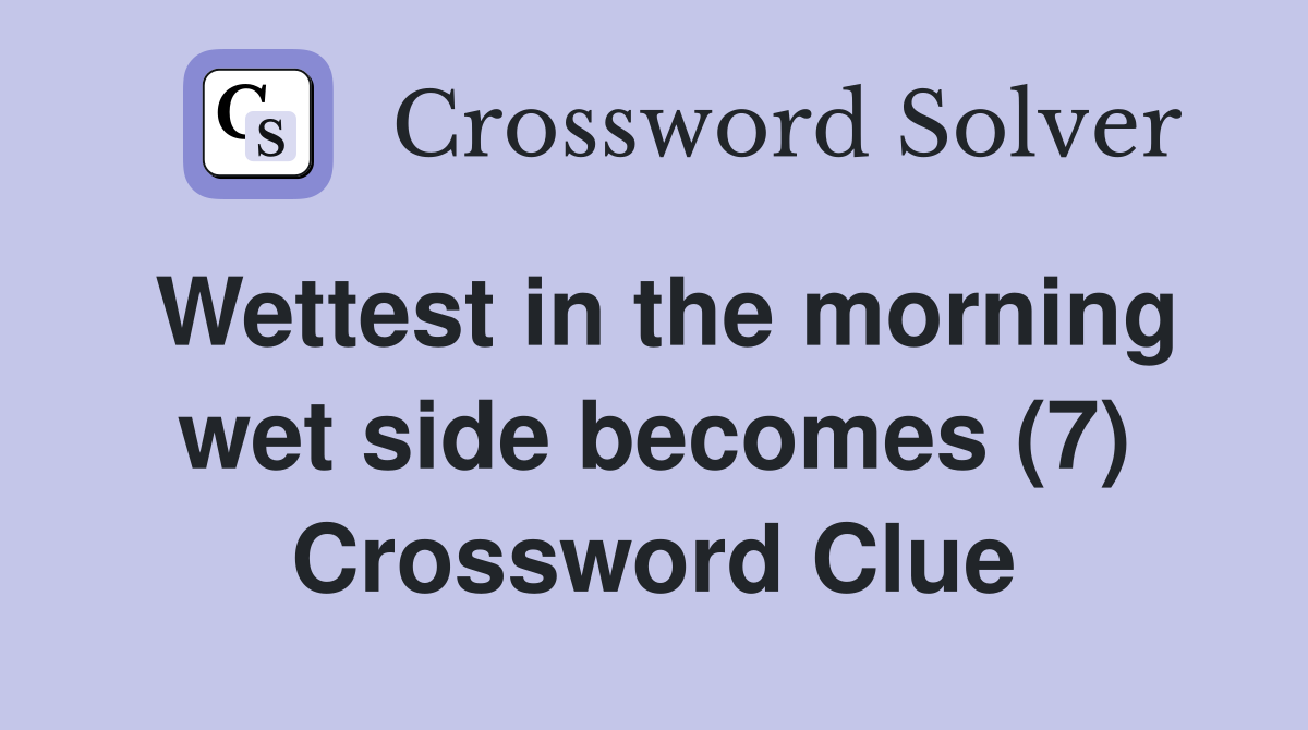 Wettest in the morning wet side becomes (7) Crossword Clue Answers