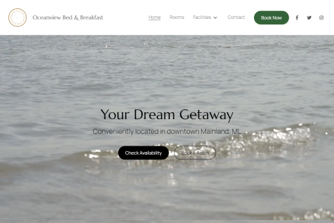 Make a Website with Oceanview Bed Breakfast Template Website com