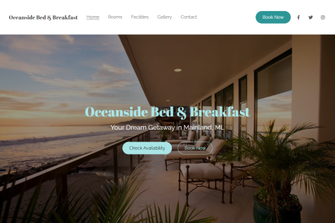 Make a Website with Oceanside Bed Breakfast Template Website com