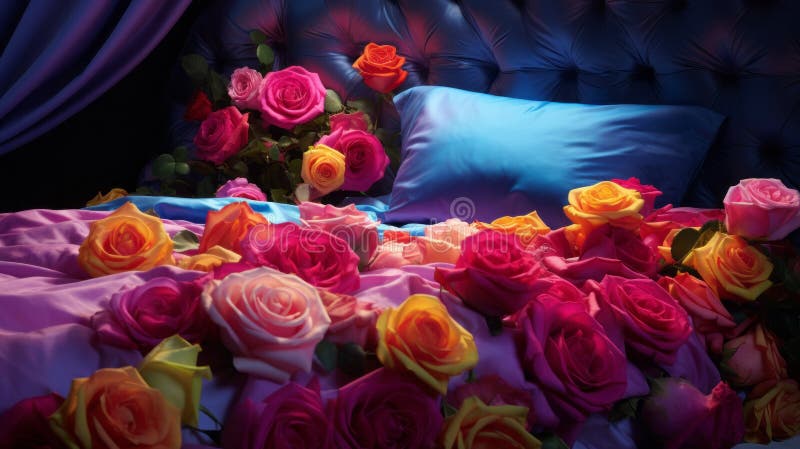 Futuristic Chromatic Waves: Photorealistic Fantasies of Roses on a Bed