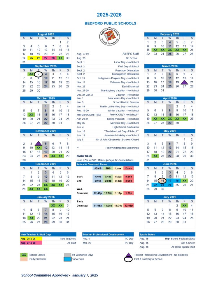 Bedford Public Schools Calendar 25 26 Revised PDF EduCounty