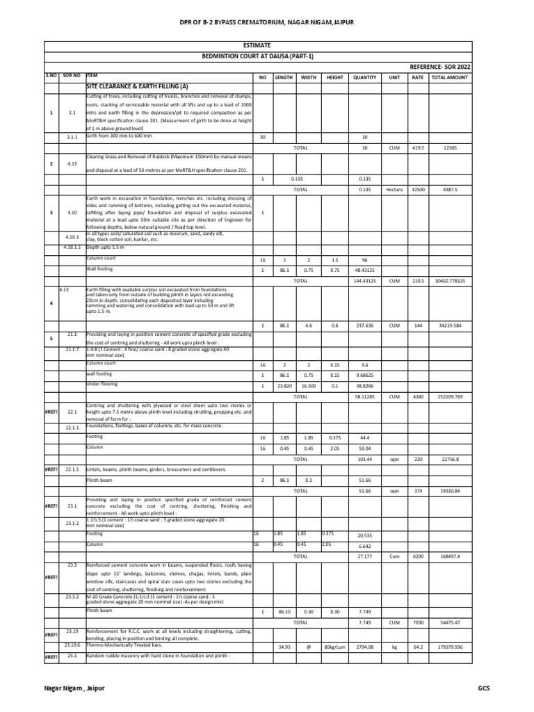 Estimate Bedminton Court Dausa PDF Concrete Column