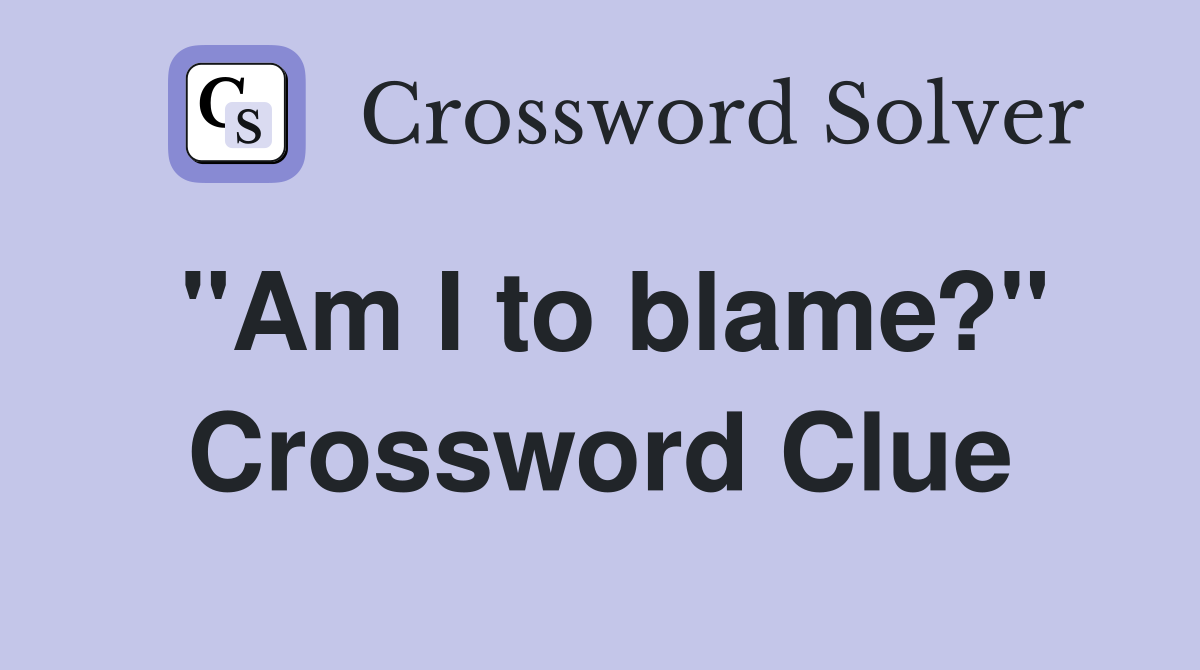 quot Am I to blame? quot Crossword Clue Answers Crossword Solver