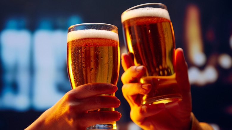 People Enjoying A Beer At A Bar Background Cheers With Beer Hd