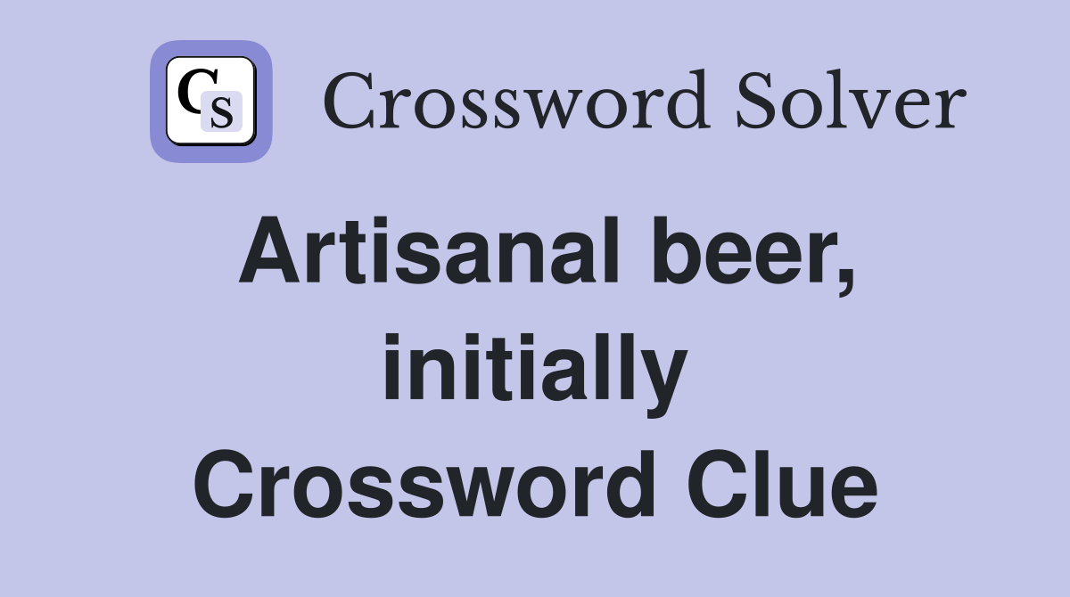 Artisanal beer initially Crossword Clue Answers Crossword Solver