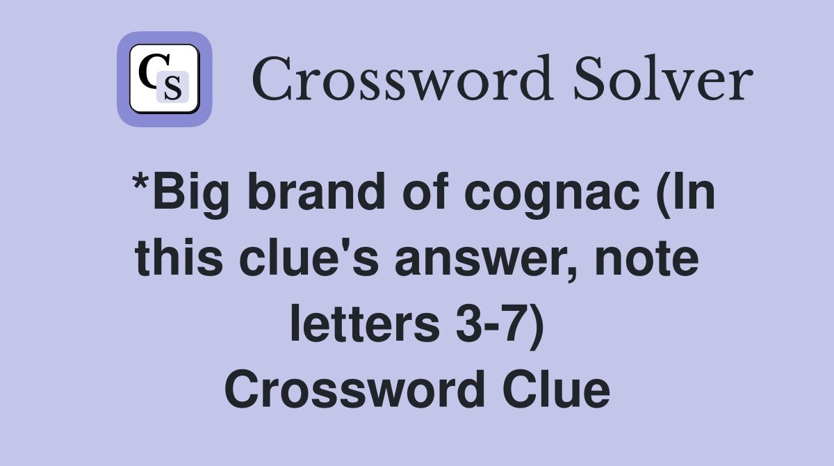 *Big brand of cognac (In this clue #39 s answer note letters 3 7