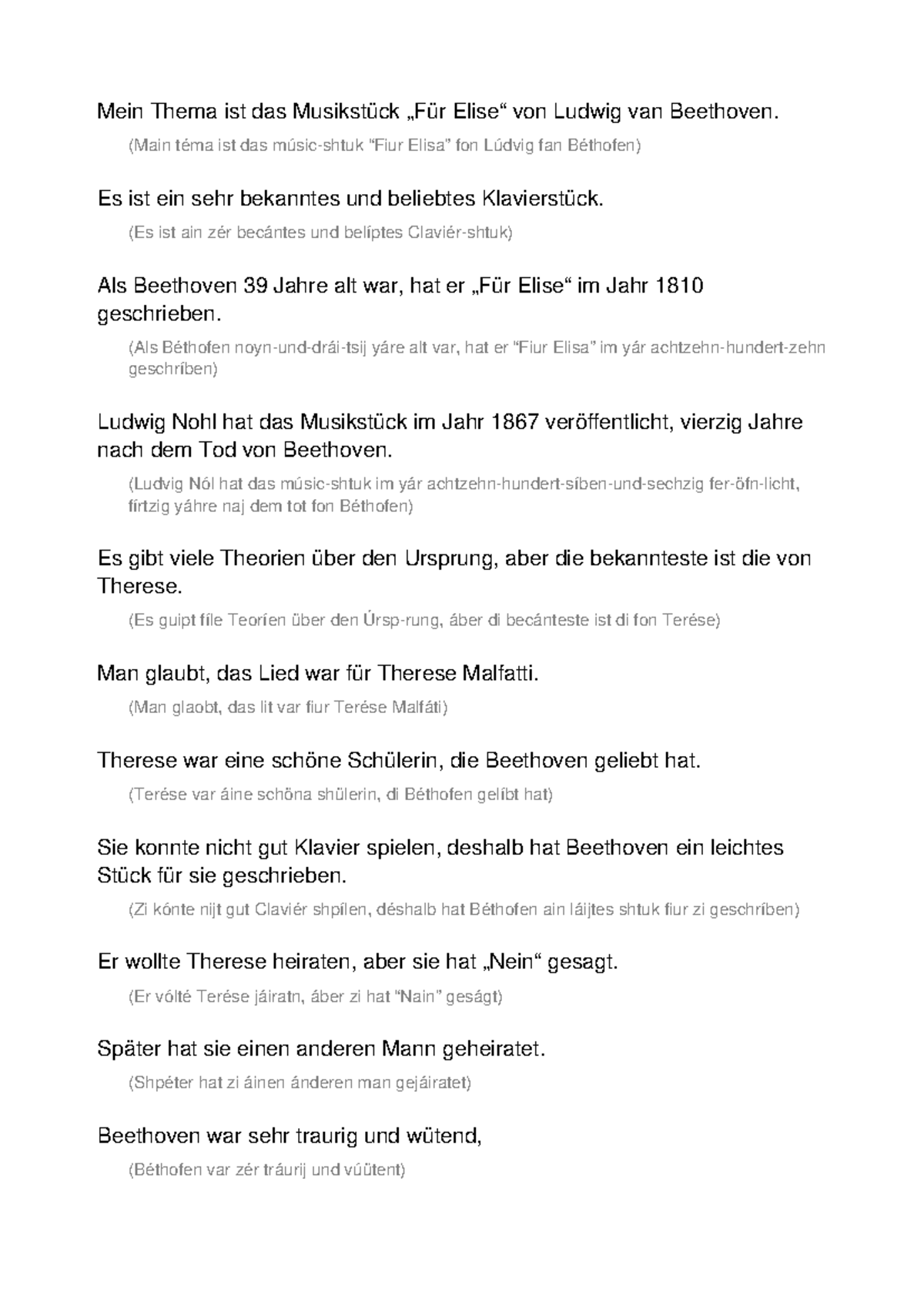 Fur Elise Präsentation A2: Beethovens bekanntes Klavierstück Studocu