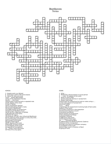 Beethoven Sonata Fact Sheet and Crossword Teaching Resources