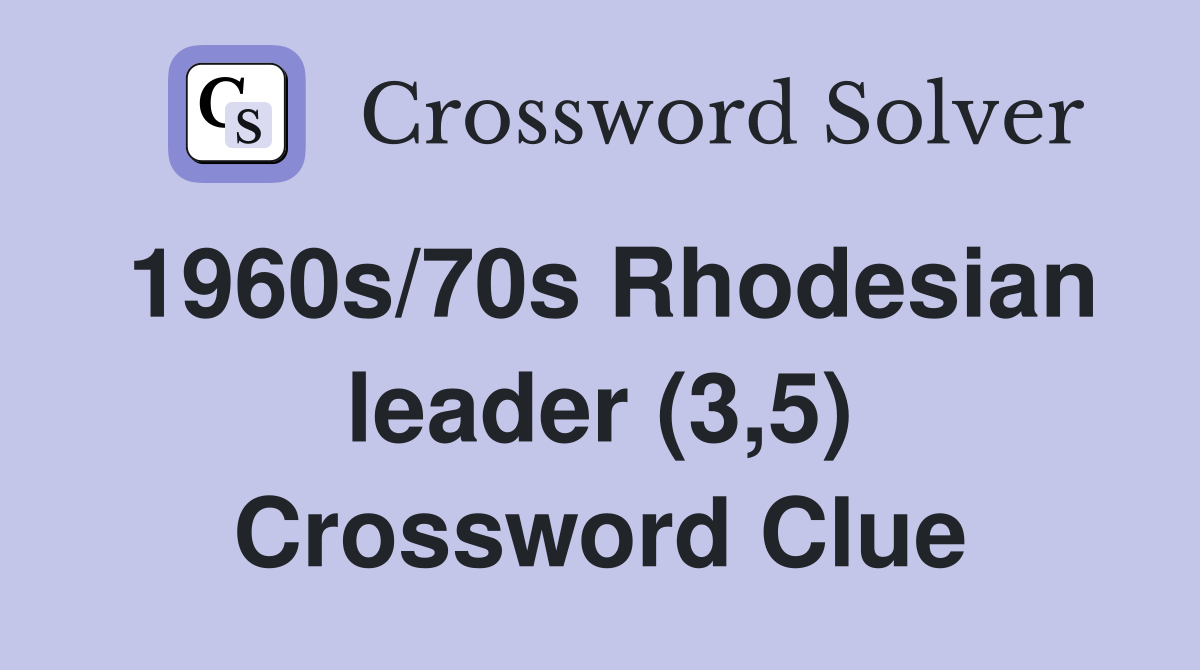 1960s/70s Rhodesian leader (3 5) Crossword Clue Answers Crossword
