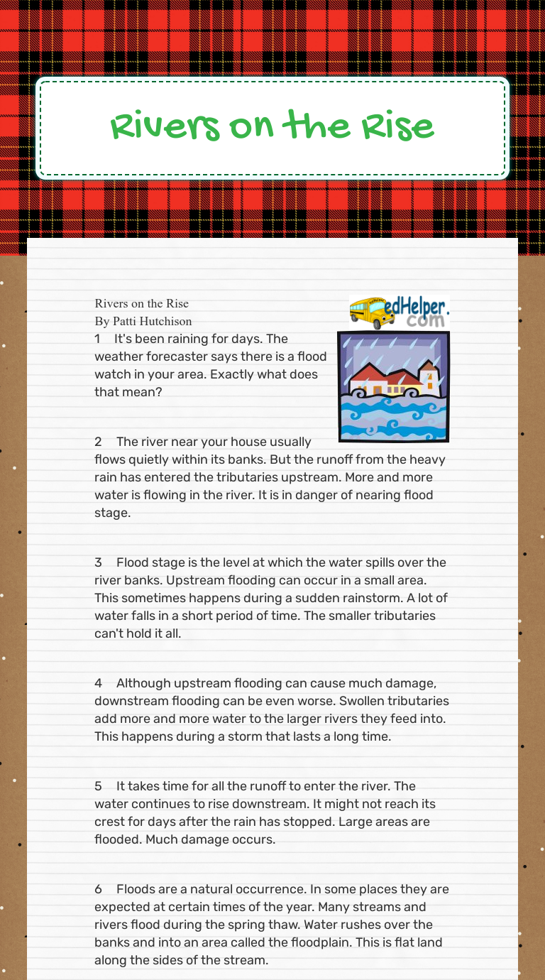 Flood Reading Comprehension Worksheet edHelper Worksheets Library