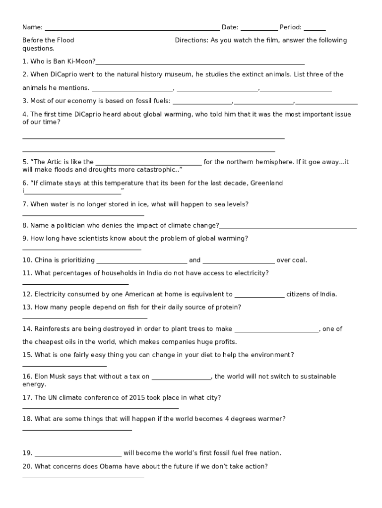 Before The Flood Movie Discussion Worksheet Answers ~ Calculator