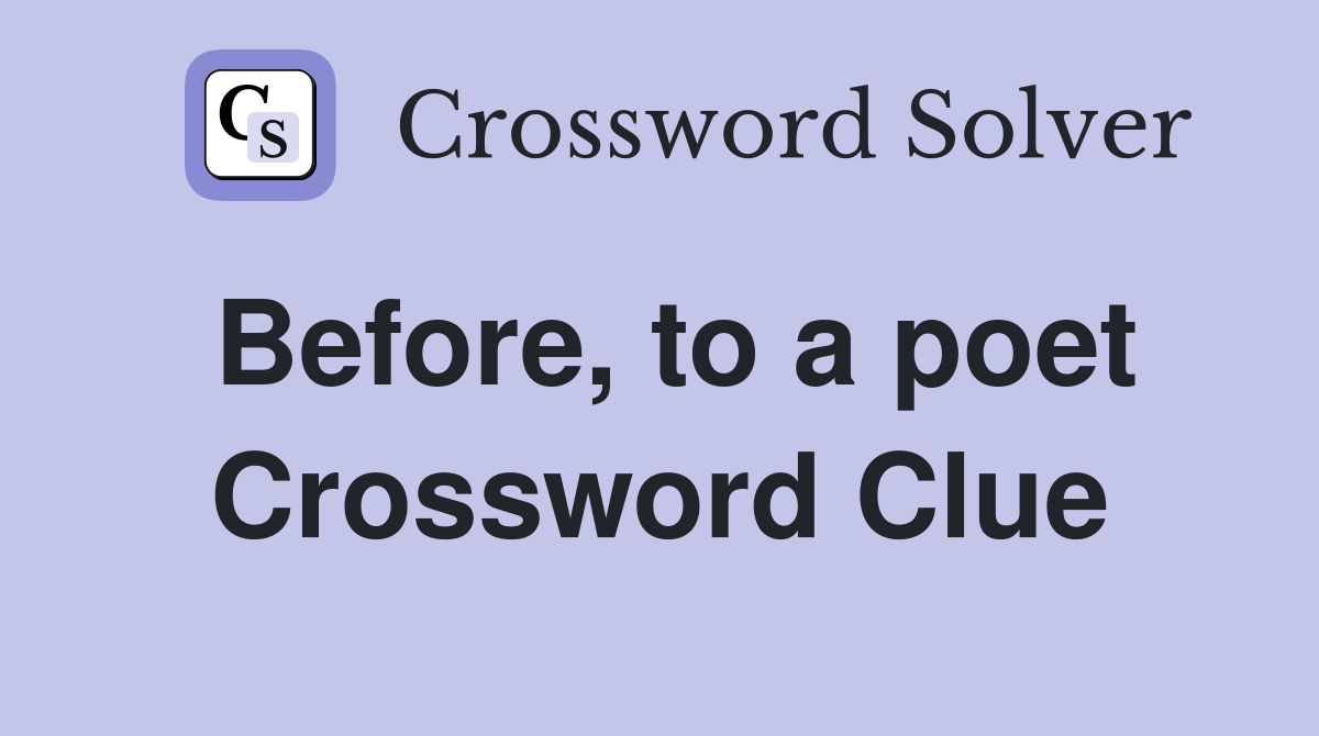 Before to a poet Crossword Clue Answers Crossword Solver