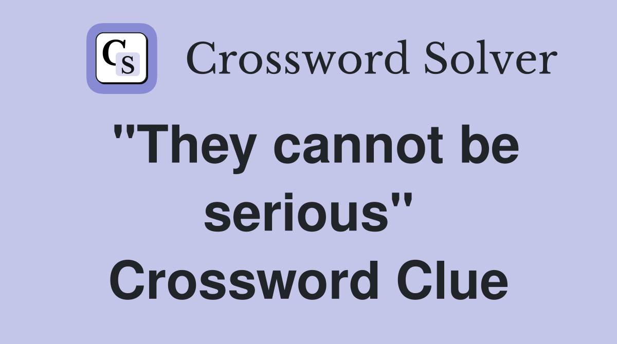 quot They cannot be serious quot Crossword Clue Answers Crossword Solver