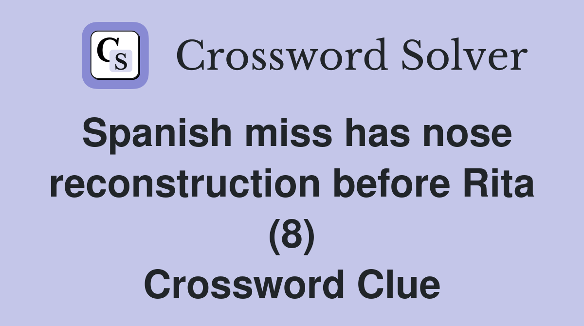 Spanish miss has nose reconstruction before Rita (8) Crossword Clue