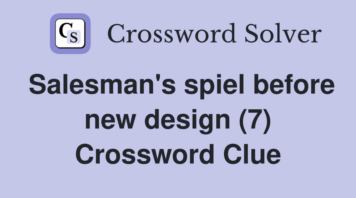 Salesman #39 s spiel before new design (7) Crossword Clue Answers