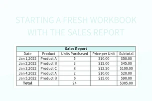 Starting A Fresh Workbook With The Sales Report Excel Template And