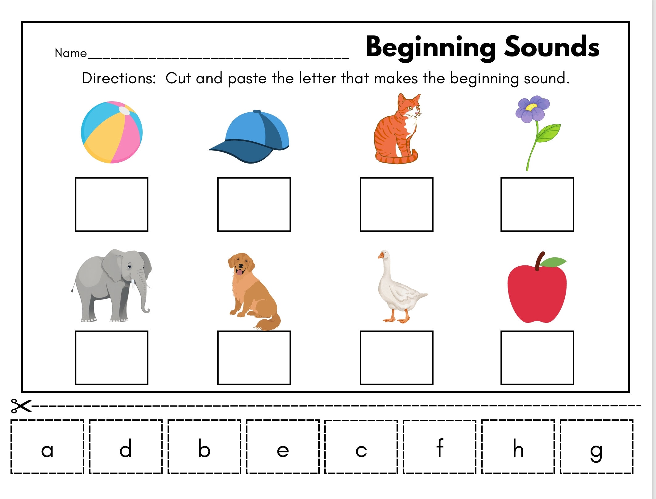 Beginning Sounds Cut Paste Worksheets by simplycraftykids TPT