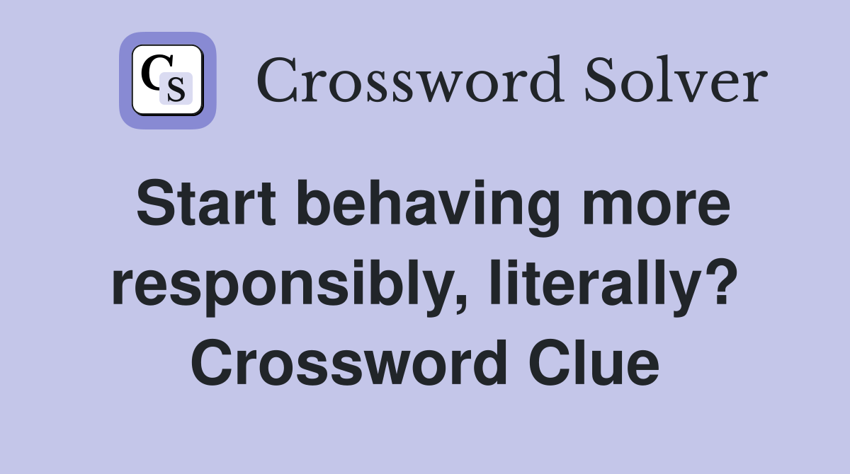 Start behaving more responsibly literally? Crossword Clue Answers