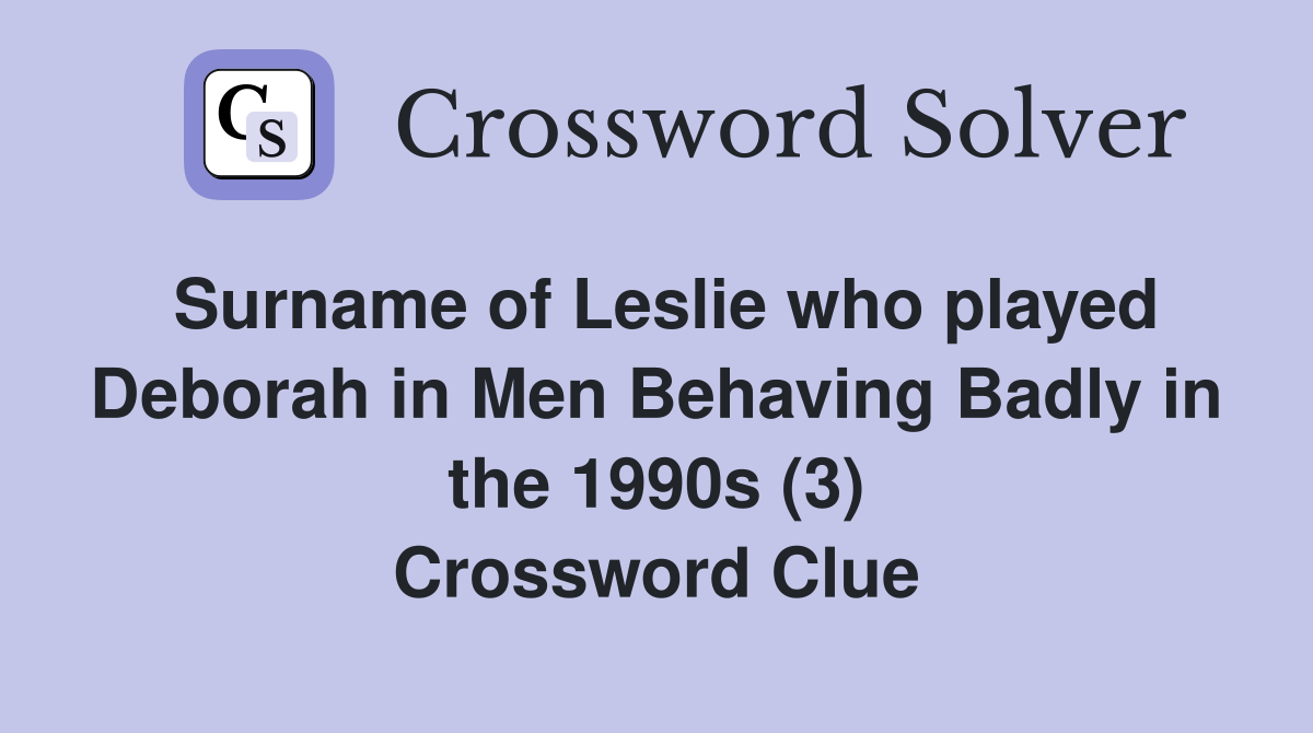 Leslie appeared in Men Behaving Badly and Holby City (3) Crossword