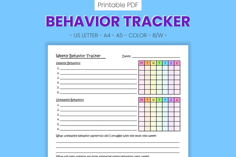 Weekly Behavior Tracker Printable Worksheet Self Reflection Etsy