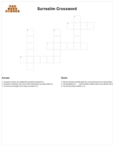 Surrealism crossword Teaching Resources