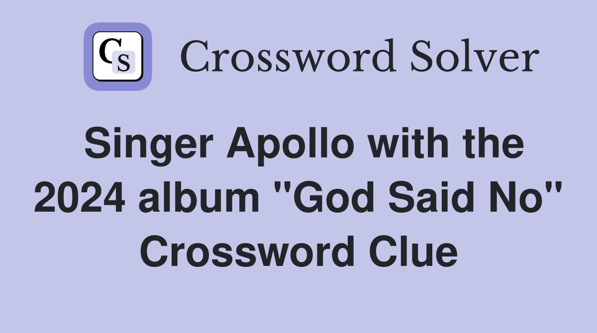 Singer Apollo with the 2024 album quot God Said No quot Crossword Clue