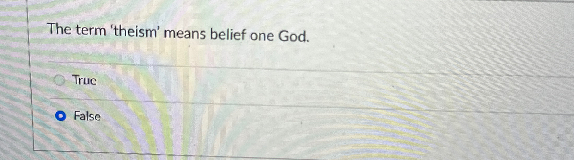 Solved The term #39 theism #39 means belief one God TrueFalseThe Chegg com