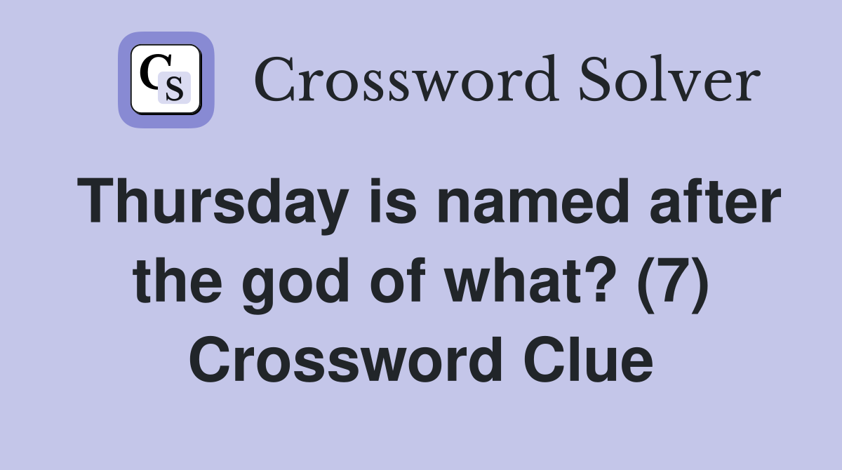 Thursday is named after the god of what? (7) Crossword Clue Answers