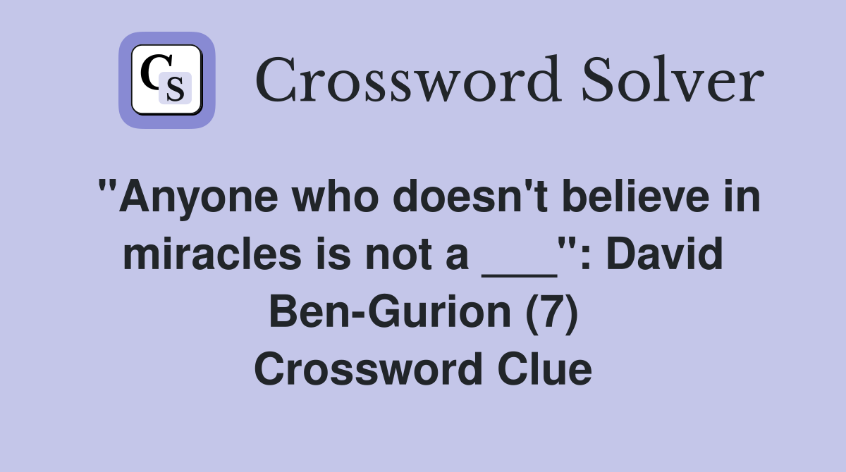 quot Anyone who doesn #39 t believe in miracles is not a quot : David Ben Gurion