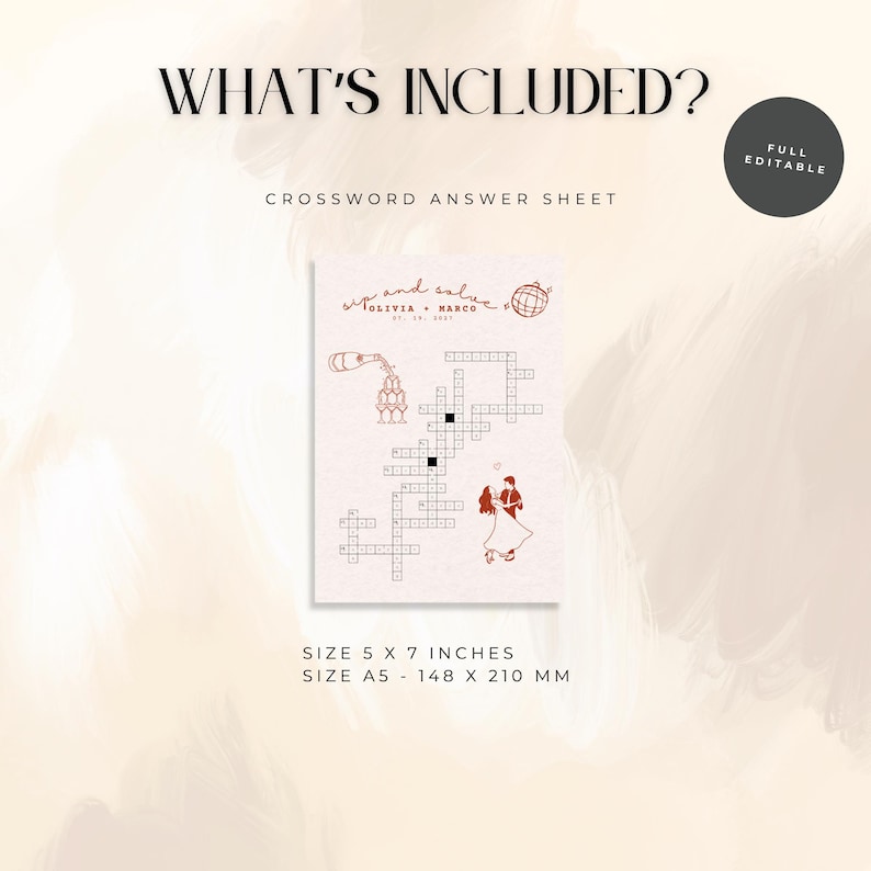 Hand Drawn Wedding Crossword Puzzle Sip and Solve Game Template