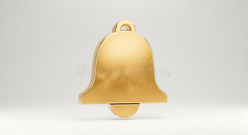 A Gold Bell Icon with a Smooth Shiny Surface is Suspended Against a
