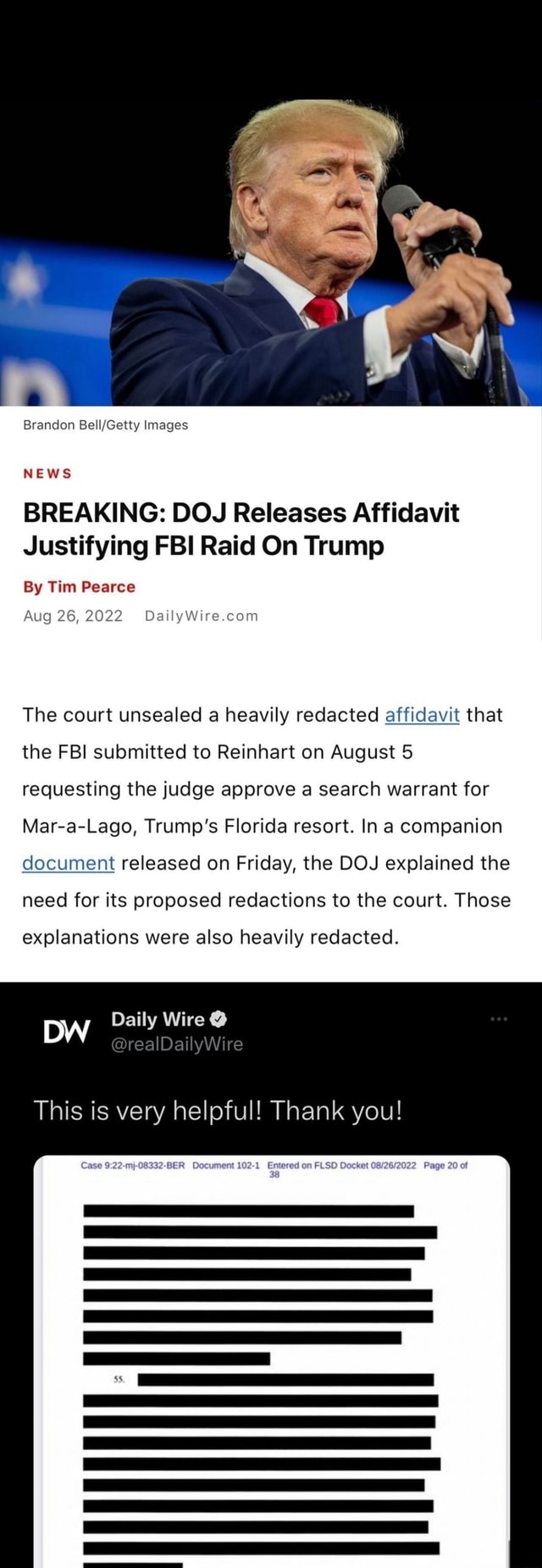 Brandon Bell Getty Images NEWS BREAKING: DOJ Releases Affidavit