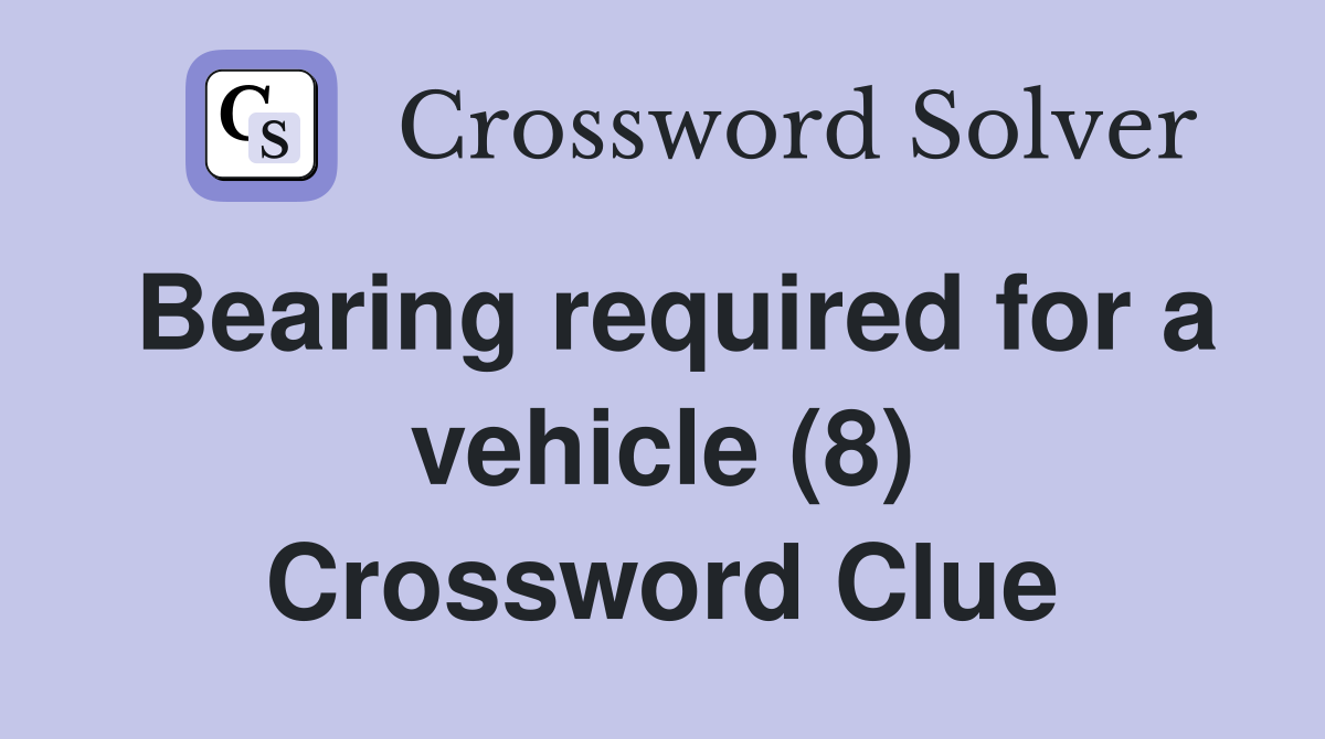 Bearing required for a vehicle (8) Crossword Clue Answers Crossword
