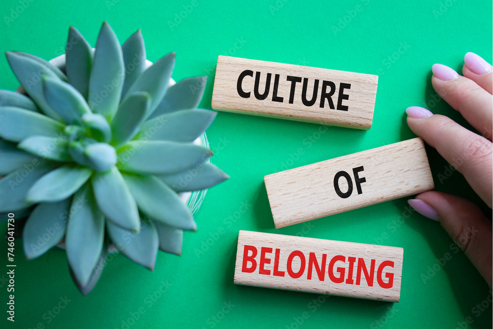 Culture of Belonging symbol Wooden blocks with words Culture of