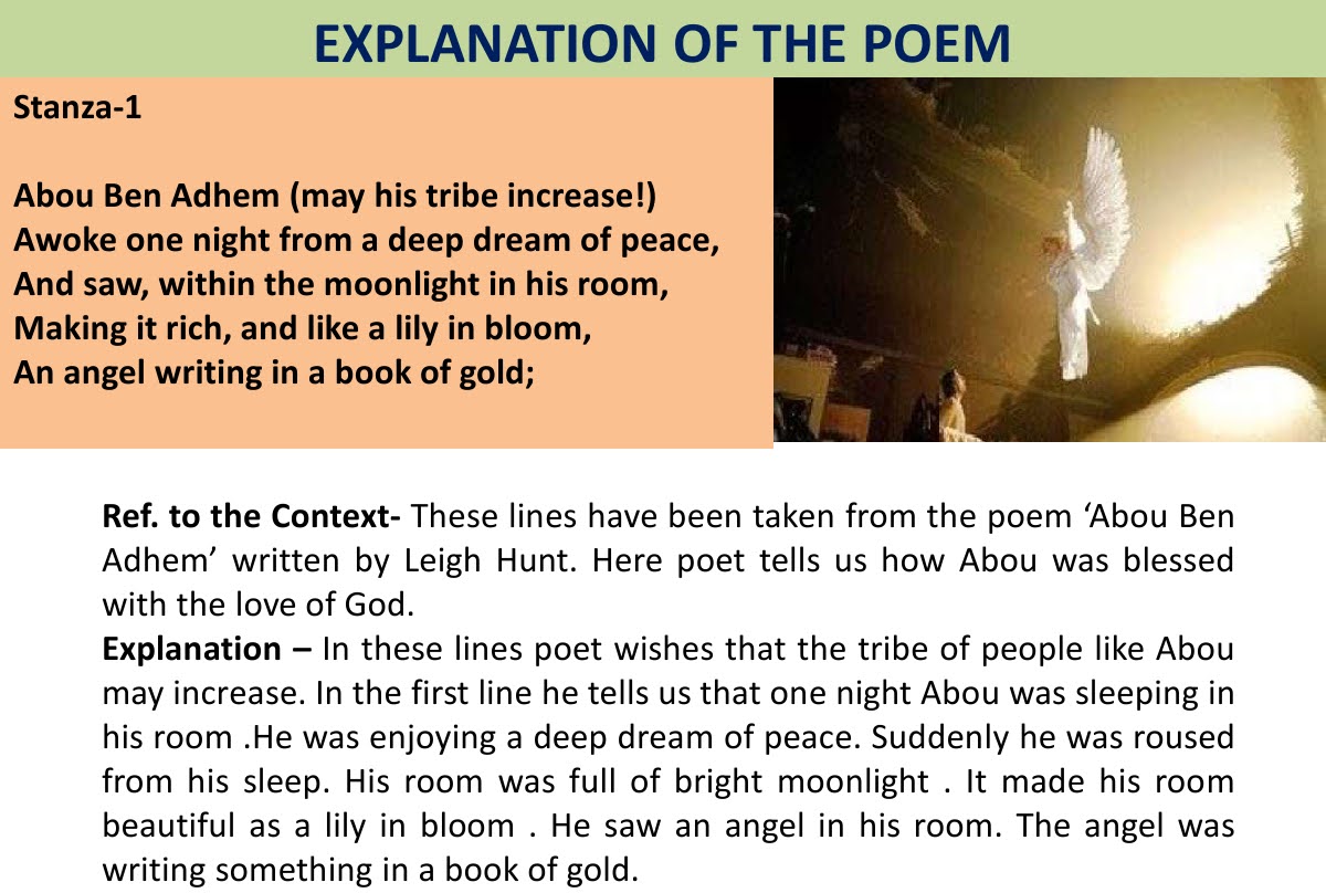 7th Standard English Abou Ben Adhem Leigh Hunt Poem Notes