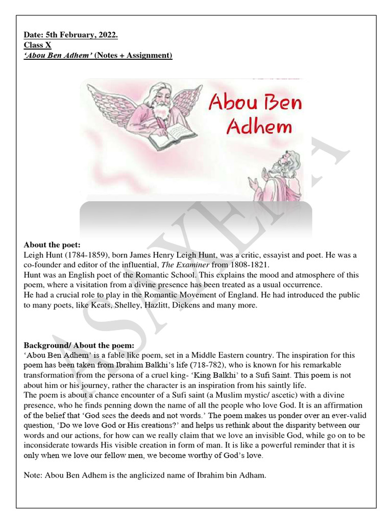 Abou Ben Adhem (Notes Assignment) PDF Poetry Sufism