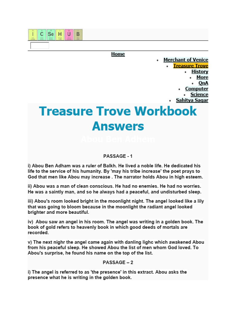 Treasure Trove Poems Workbook Answers Abou Ben Adhem PDF Angel Dream