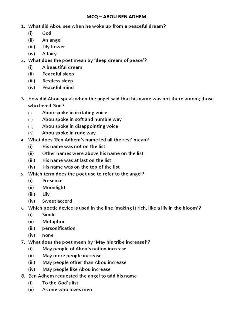 MCQ Abou Ben Adhem PDF PDF