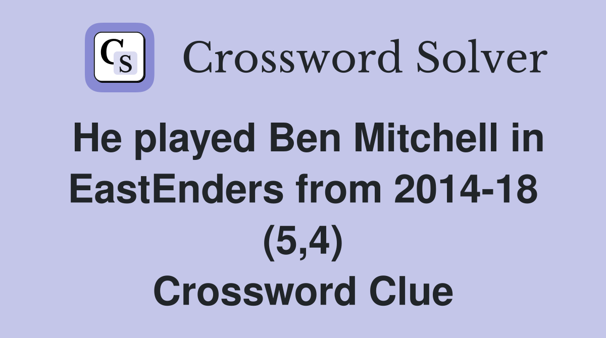 He played Ben Mitchell in EastEnders from 2014 18 (5 4) Crossword