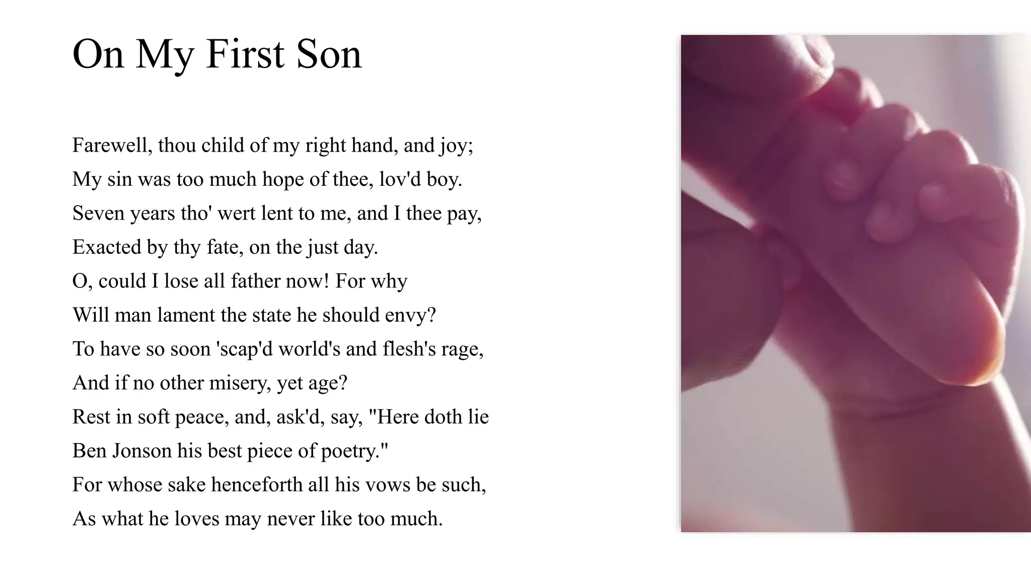 On My First Son #39 by Ben Jonson Poem PowerPoint Twinkl