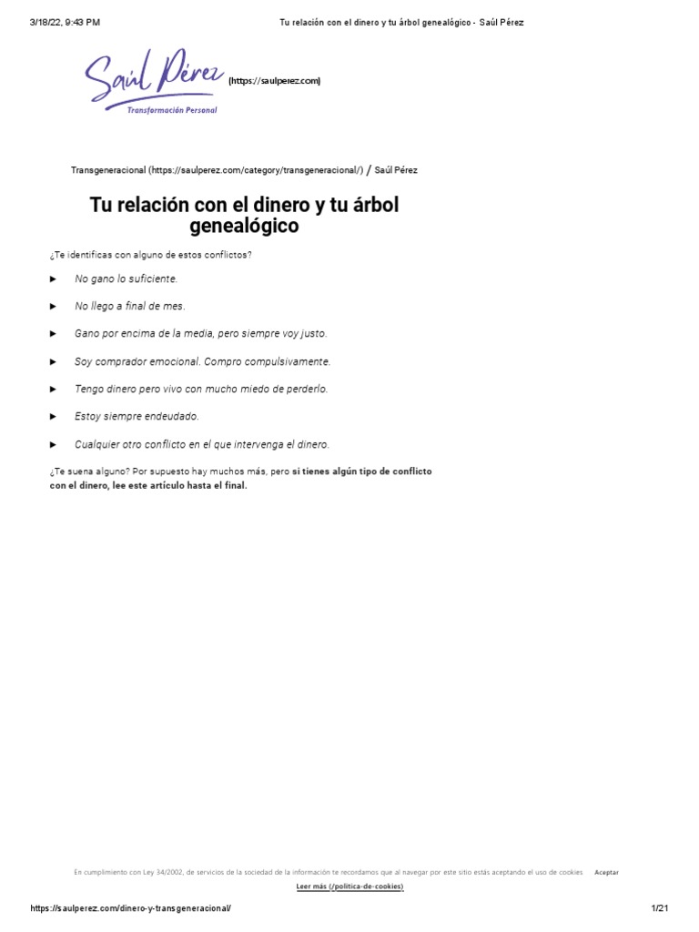 Tu Relación Con El Dinero y Tu Árbol Genealógico Saúl Pérez PDF