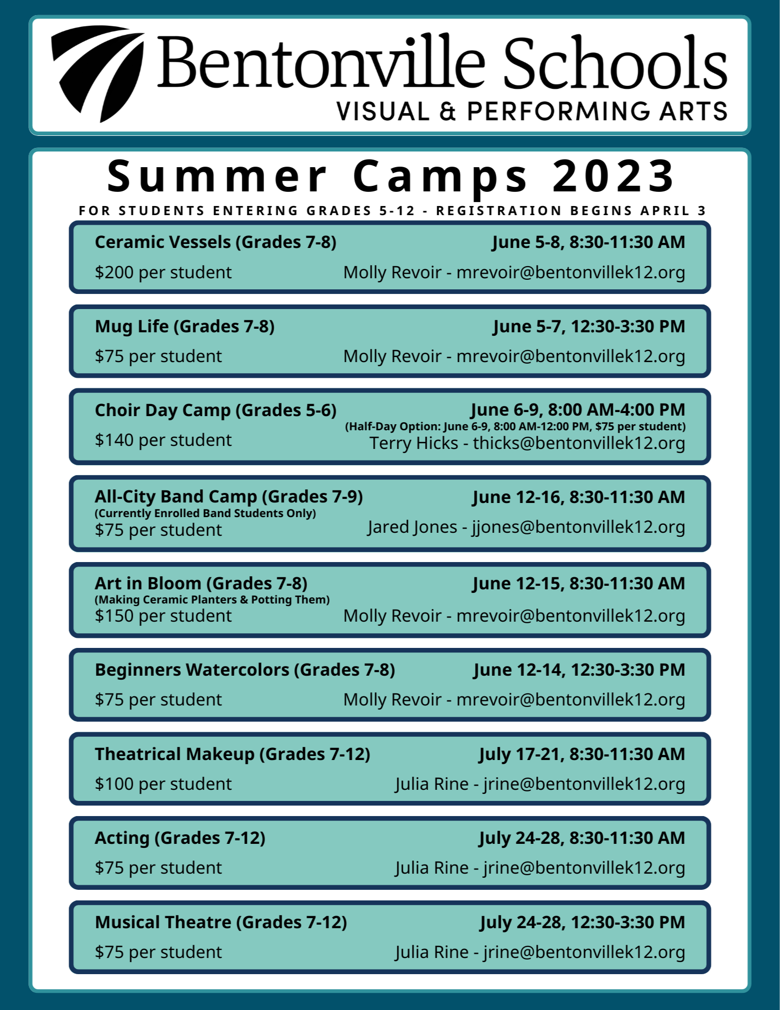 VPA Summer Camps Bentonville Schools