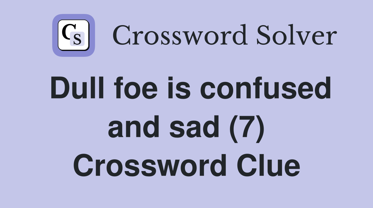 Dull foe is confused and sad (7) Crossword Clue Answers Crossword