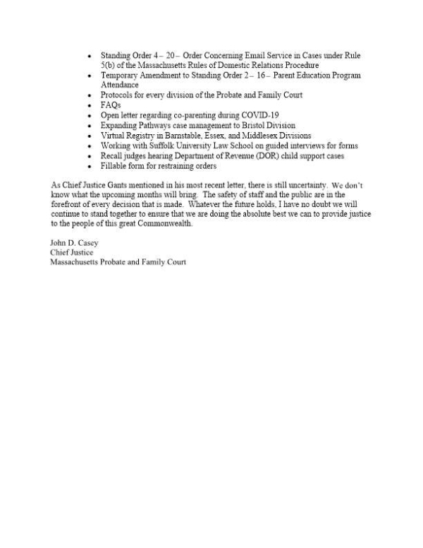 5/19/2020: Open Letter from Hon John D Casey Chief Justice of the