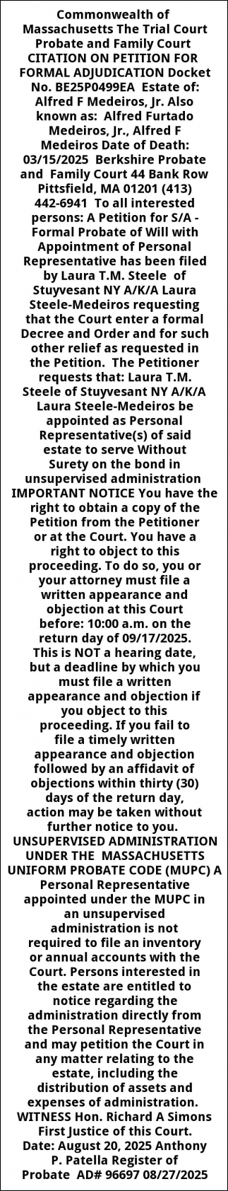 Informal Probate Publication Notice Berkshire Probate and Family Court