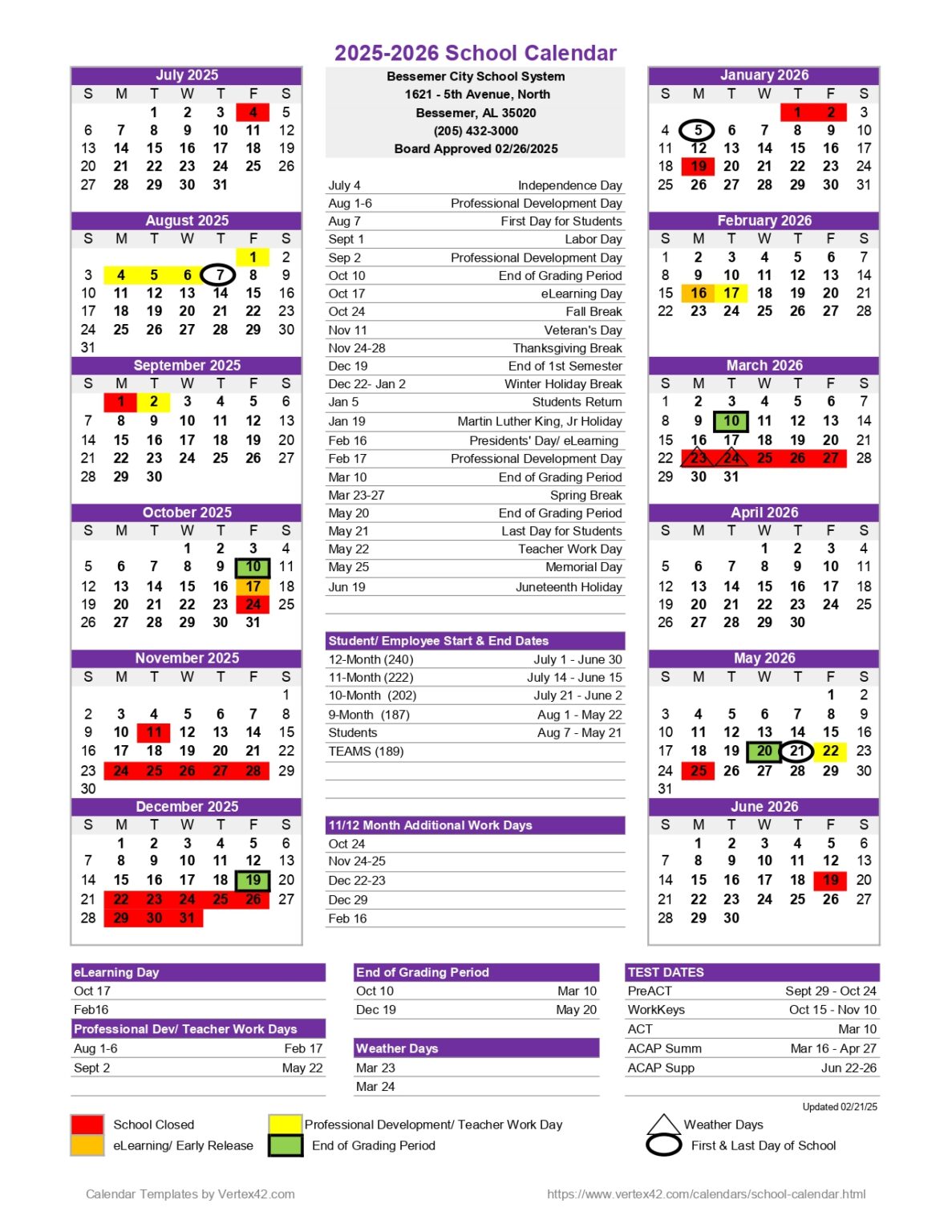Bessemer City Schools Calendar 2025 2026: Key Dates Holidays Bham Now