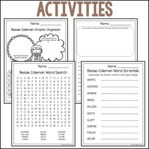 BESSIE COLEMAN Word Scramble Puzzle Worksheets Activities TPT